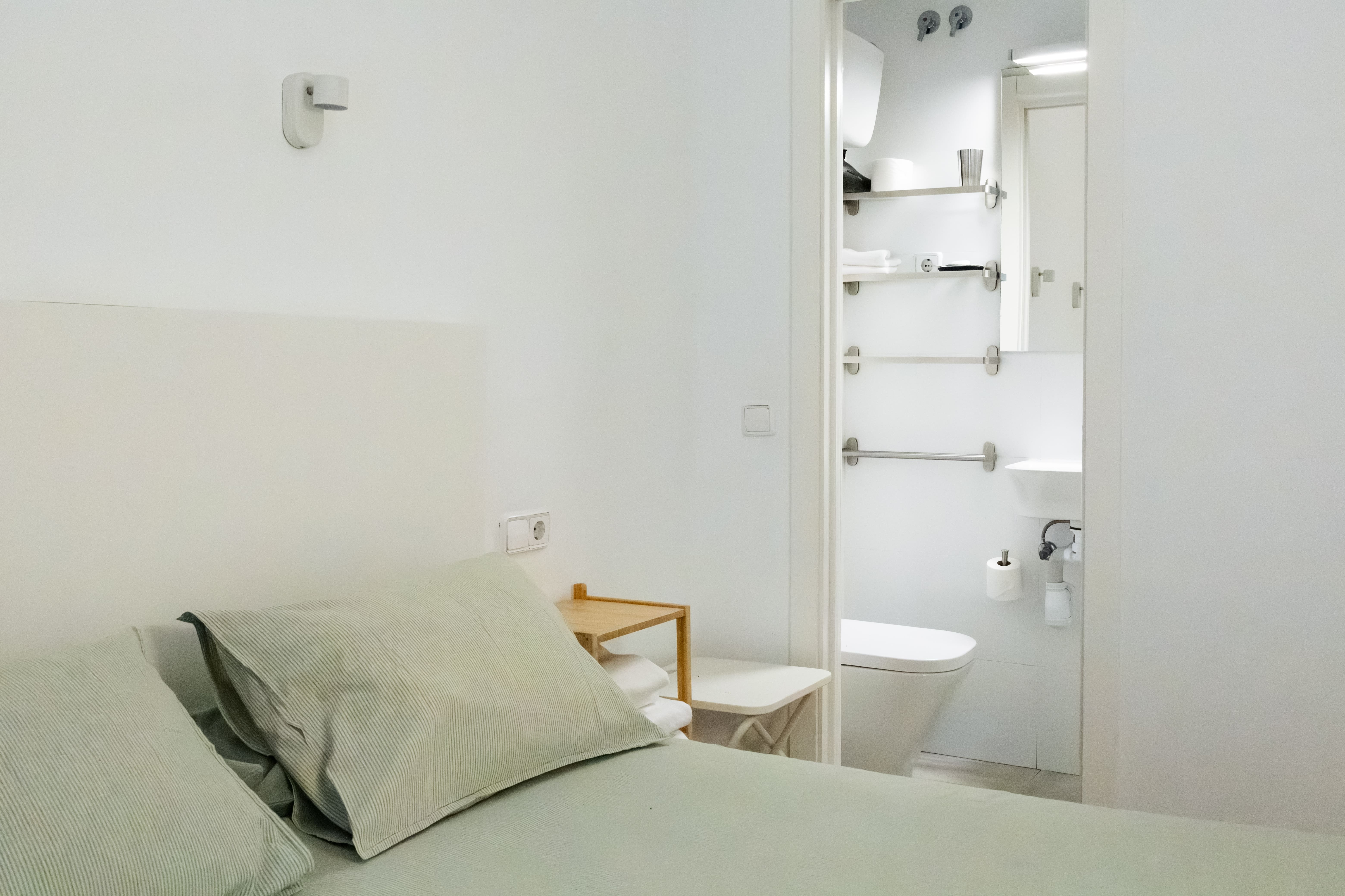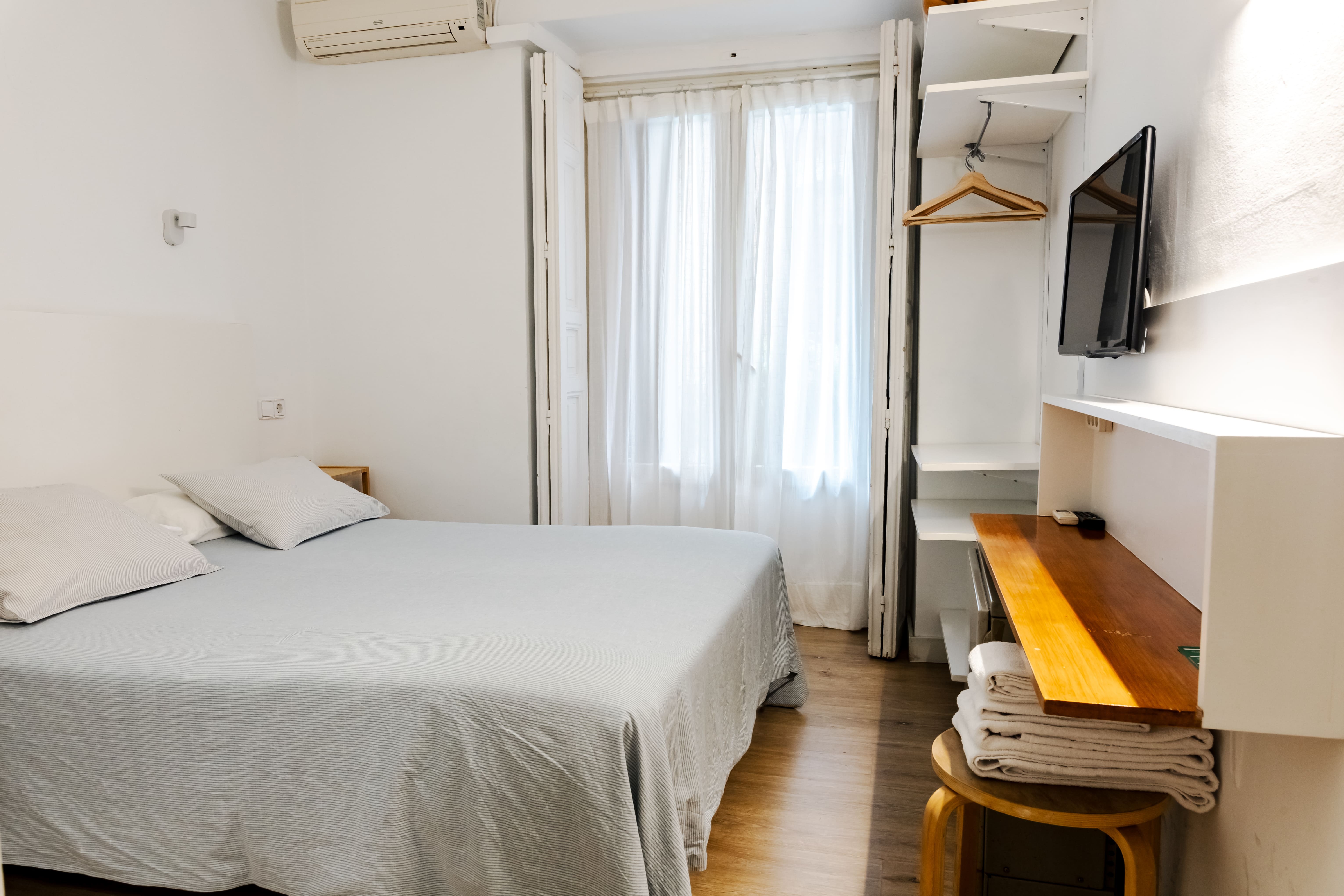 Disfruta de una estancia cómoda y acogedora en nuestras habitaciones dobles, perfectas para parejas o dos personas. Cuentan con una cama doble, decoración funcional, baño privado, aire acondicionado, TV y wifi gratuito. Un espacio ideal para relajarse tras un día recorriendo Madrid.